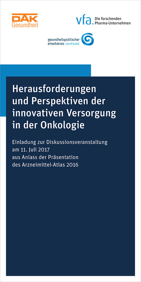 Panelists (left to right): Felix Prell (project leader PROMETHEUS), Dirk Uthgenannt (resident oncologist), Thomas Bodmer (chairman DAK health), Birgit Fischer (chief executive vfa), Ariane Höer (IGES institute), Carsten Bokemeyer (medical director cancer center UKE)